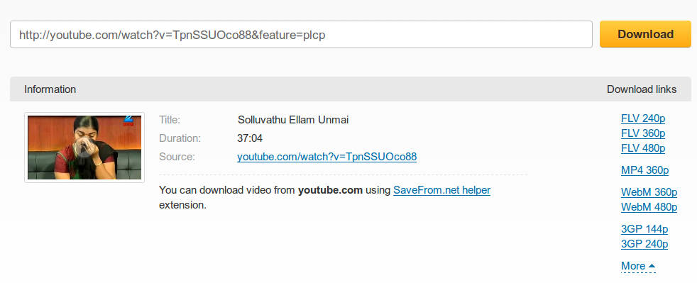 - நீங்கள் Paste செய்த Link ல் www. என்பதற்கு அருகில் ss என்ற எழுத்தை சேர்த்து கொள்ளுங்கள். http://www.ssyoutube.com/watch?v=TpnSSUOco88&feature=plcp