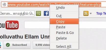 - இங்கே click செய்து Youtube தளத்திற்கு சென்று உங்களுக்கு பிடித்தமான வீடியோவின் Link ஐ Copy செய்து கொள்ளுங்கள்.